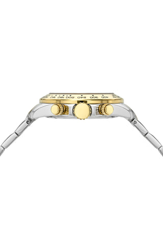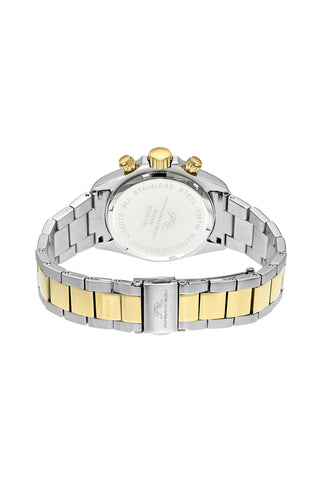 Elegant and modern, the Alexis features a sunray dial in ice blue, housed in a silver‑tone round stainless steel case. Paired with a silver and gold stainless steel bracelet, protected by a sapphire‑coated crystal, day and date windows keep you on schedule a 24‑hour subdial provides a second time perspective dual time zone display lets you track another city—an elegant treasure for any occasion.
