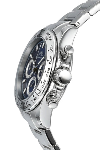 Elegant and modern, the Alexis features a sunray dial in blue, housed in a silver‑tone round stainless steel case. Paired with a silver stainless steel bracelet, protected by a sapphire‑coated crystal, day and date windows keep you on schedule a 24‑hour subdial provides a second time perspective dual time zone display lets you track another city—an elegant treasure for any occasion.