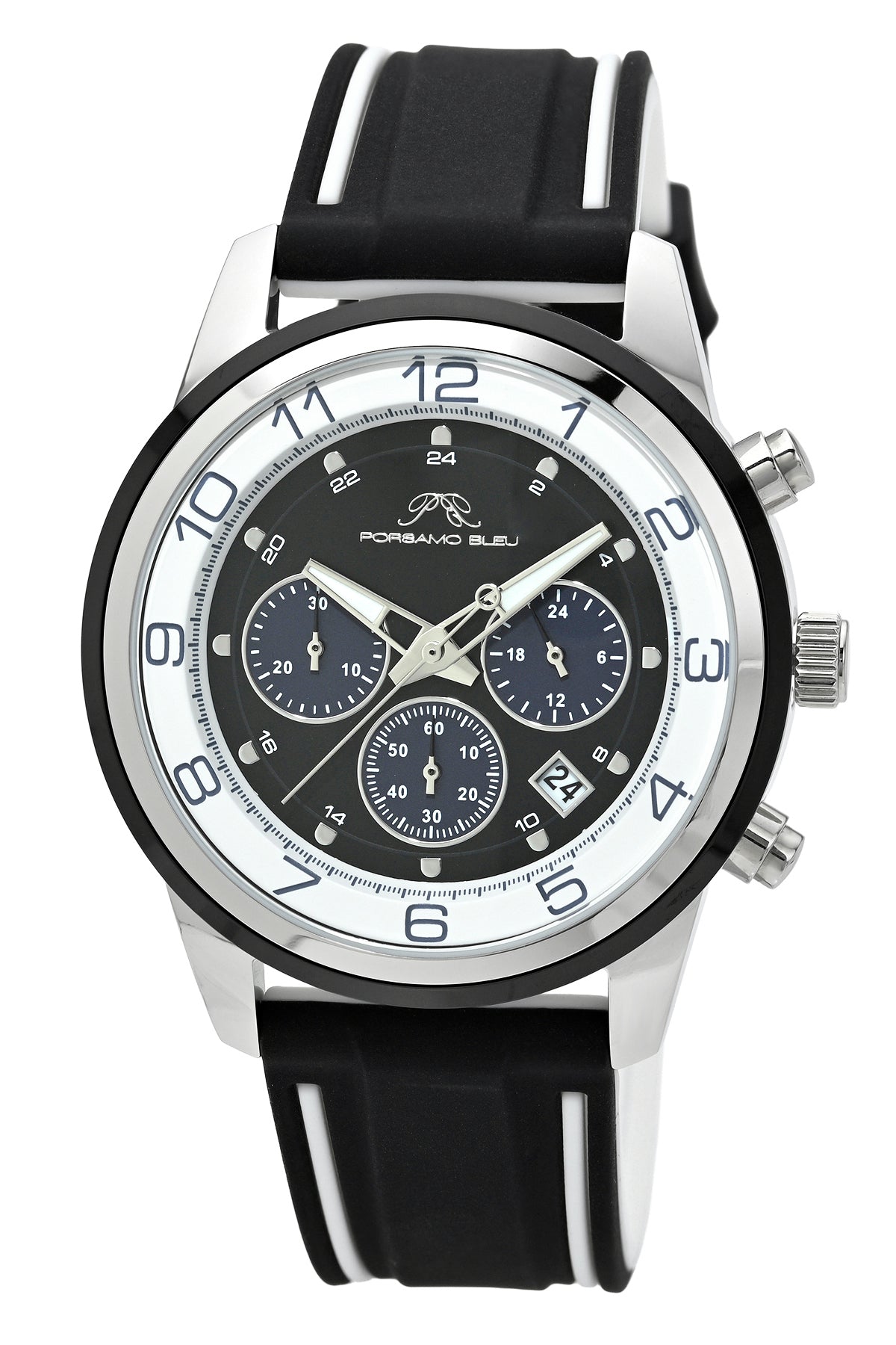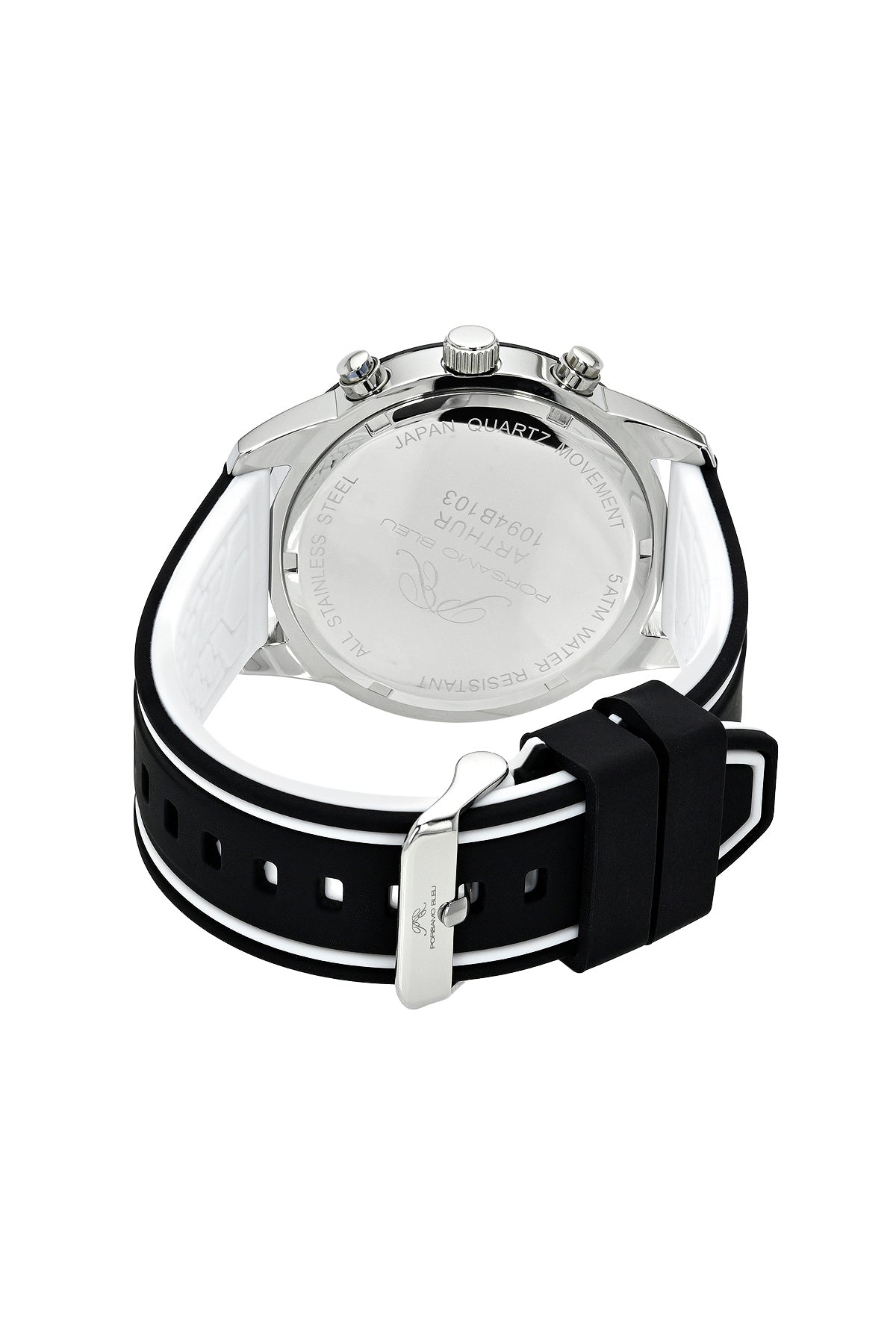 Porsamo Bleu Arthur Luxury Chronograph Men's Silicone Strap Watch, Silver, White, Black, Blue 1094BARR