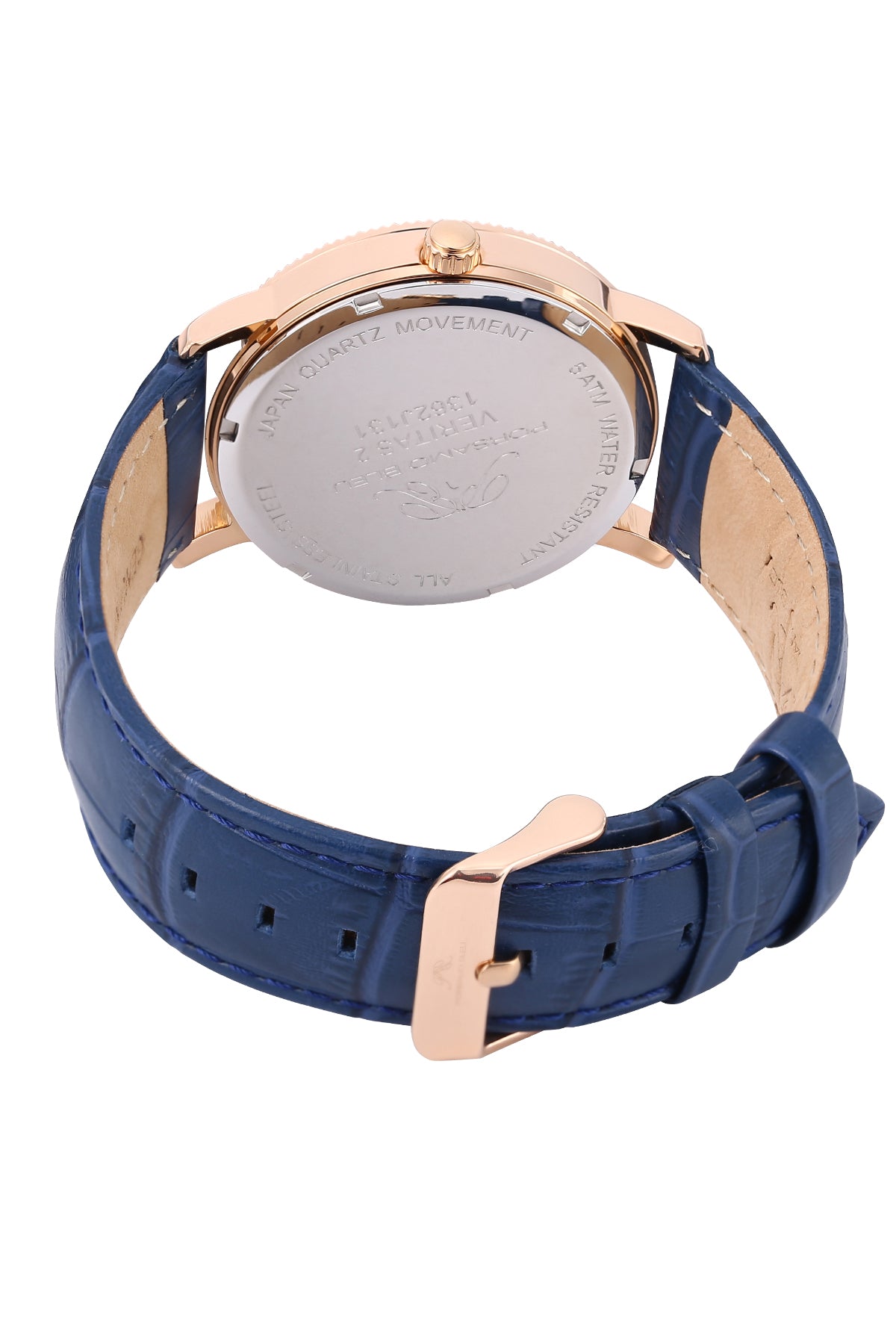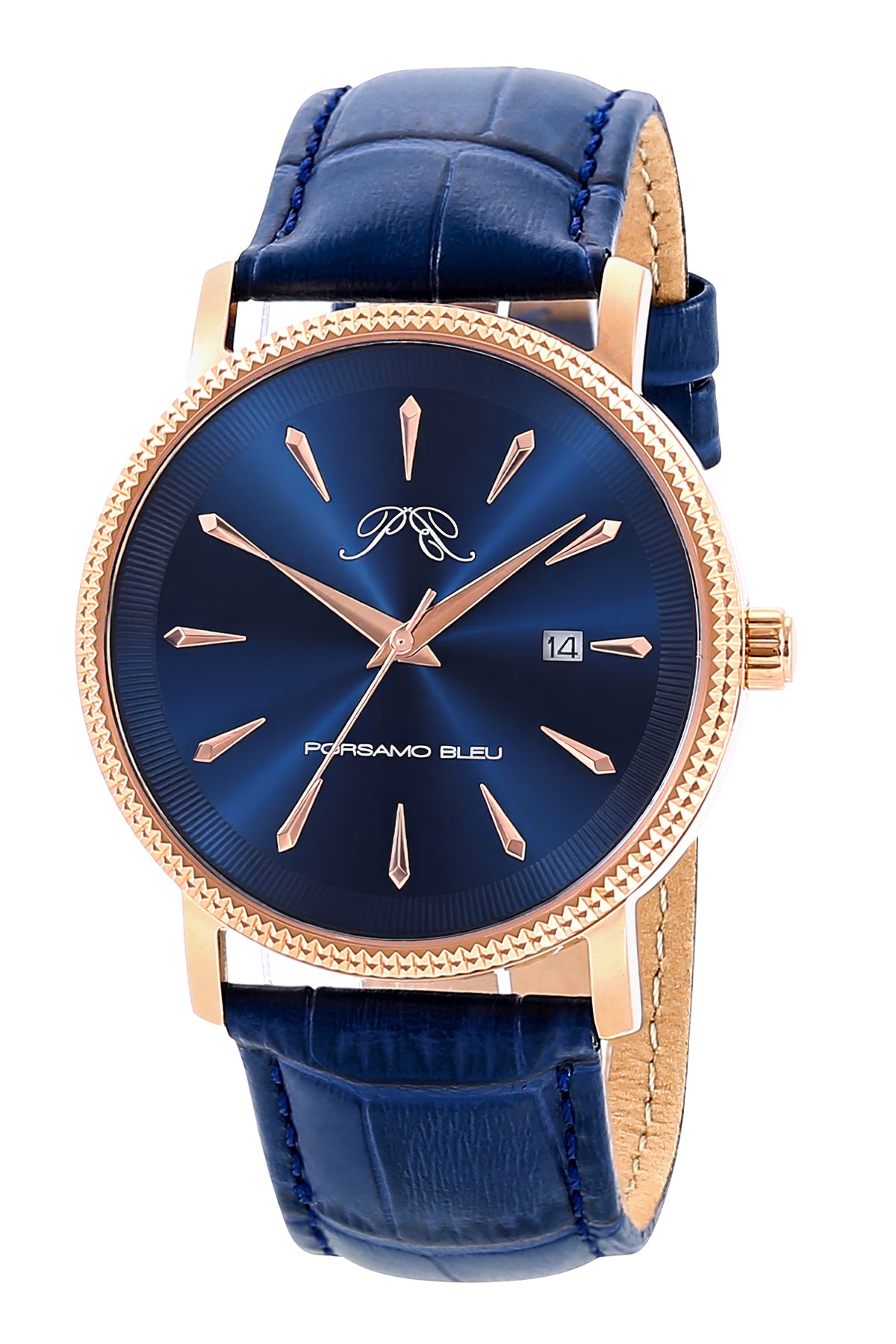 Porsamo Bleu Veritas2 Luxury Men's Watch Genuine Leather Band, Rose Tone, Blue, 1362JVEL Sale