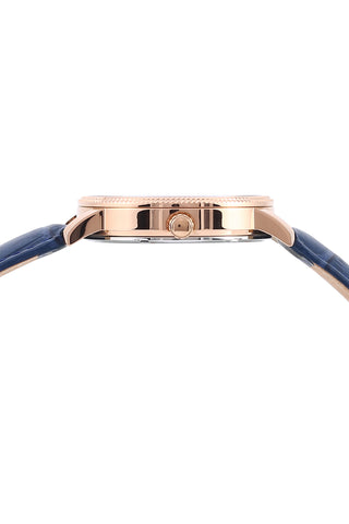 Sophisticated apperance, the Veritas2 features a blue sunray dial with a date window at 3 o'clock, housed in a rose tone round stainless steel coin case and bezel. Paired with a blue genuine leather strap, protected by a sapphire-coated crystal for an elegant every day look