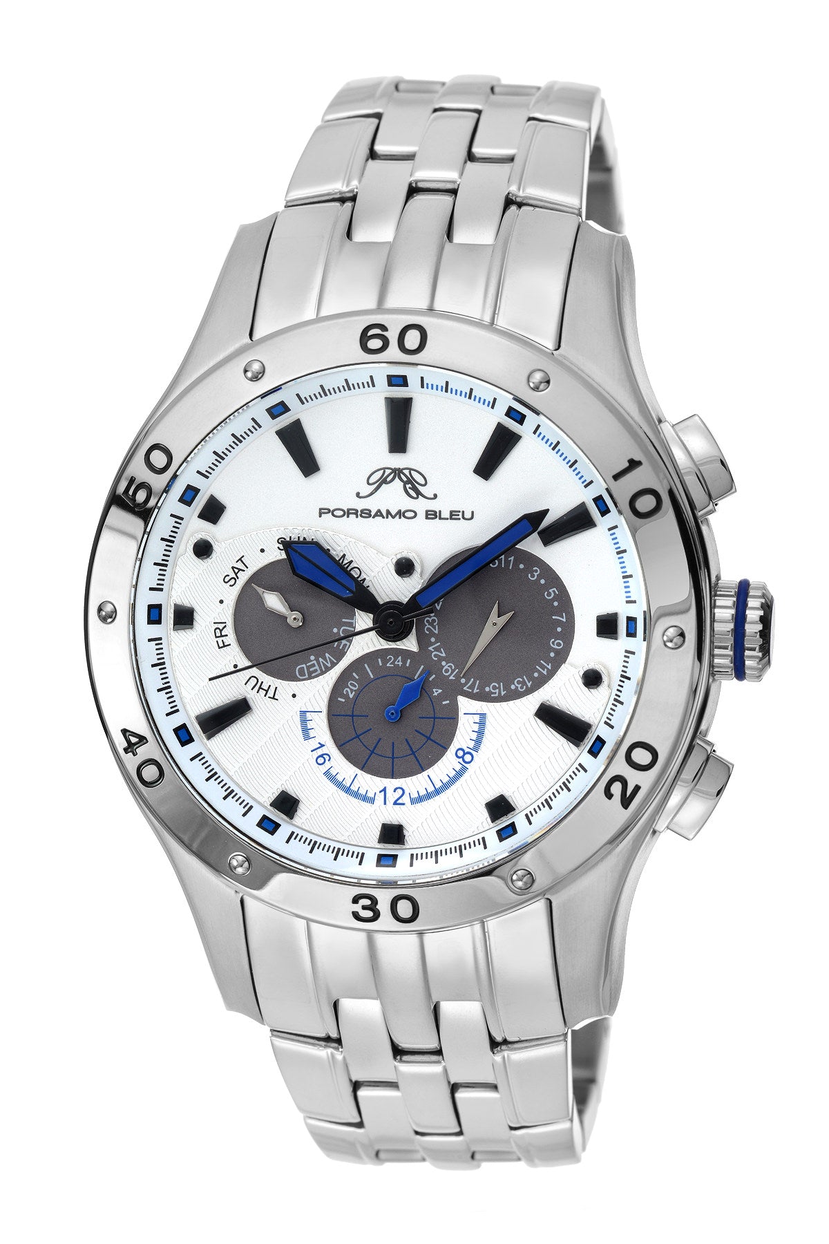 Porsamo Bleu, Andre Luxury Men's Stainless Steel Watch, Silver, White 221AANS