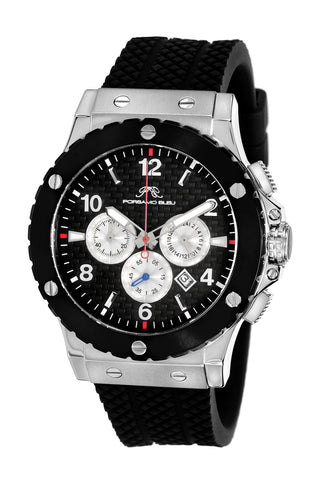 Porsamo Bleu Marcus Luxury Chronograph Men's Watch, Silicone Strap, Silver, Black 651BMAR