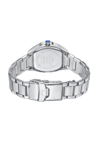 Elegant and refined, the Celine features a sunray dial in baby pink, housed in a silver‑tone tonneau stainless steel case. Paired with a silver stainless steel bracelet, protected by a sapphire‑coated crystal—a timeless piece that balances style and luxury.