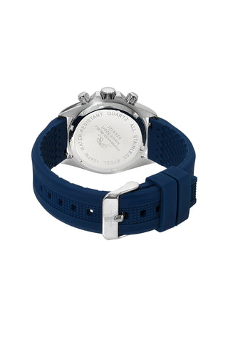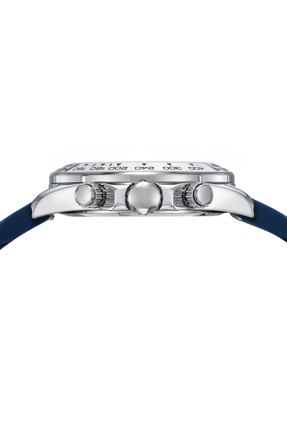 Elegant and modern, the Alexis Sport features a sunray dial in blue, housed in a silver‑tone round stainless steel case. Paired with a blue silicone strap, protected by a sapphire‑coated crystal, day and date windows keep you on schedule a 24‑hour subdial provides a second time perspective dual time zone display lets you track another city—an elegant treasure for any occasion.
