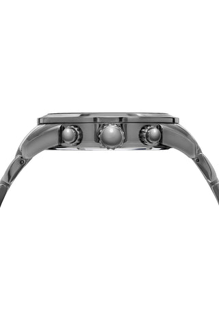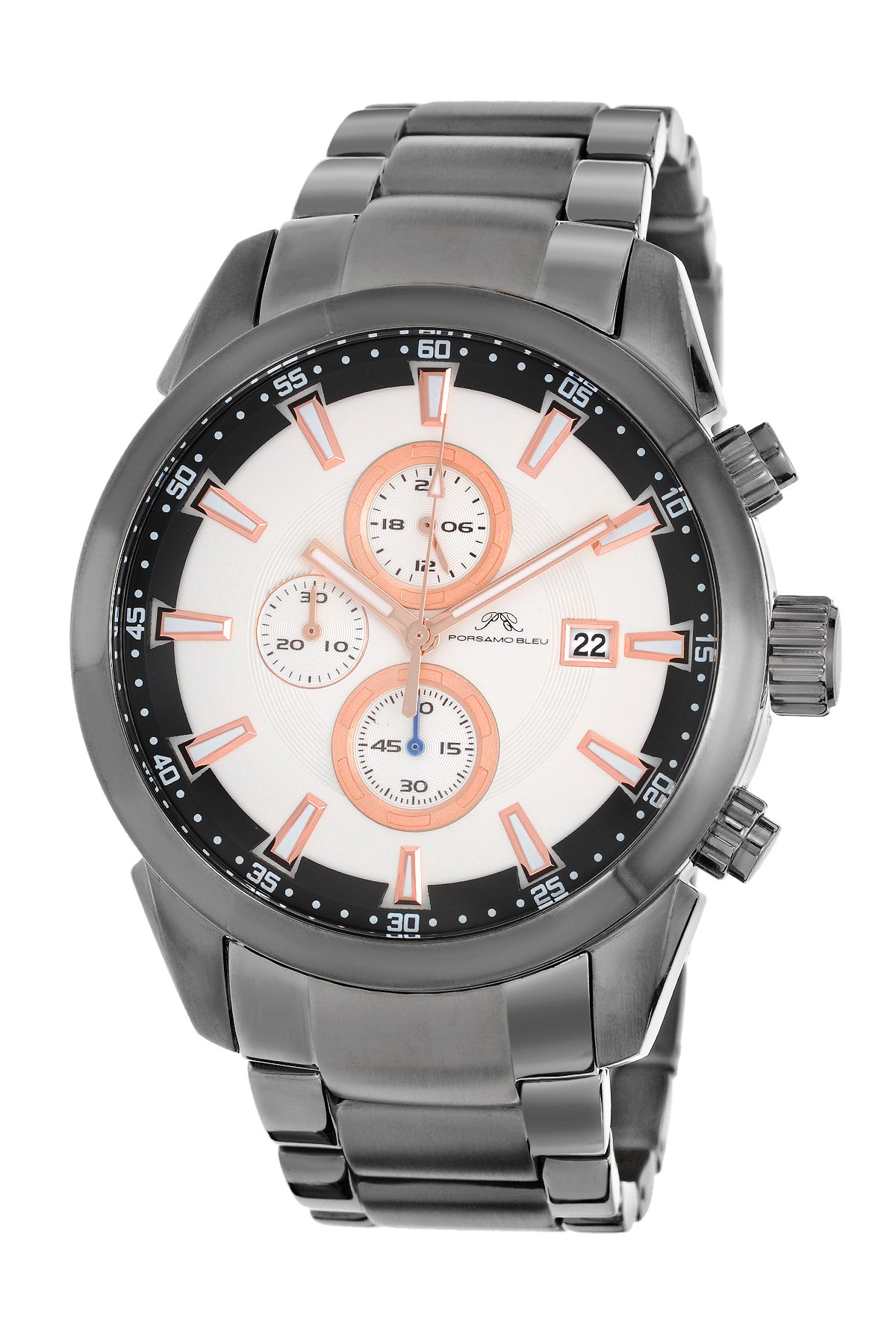 Elegant and graceful, the Enzo features a distinctive dial in white with rose‑toned elements and black outer ring, housed in a round stainless steel case. Paired with a stainless steel bracelet, protected by a sapphire‑coated crystal, chronograph subdials track minutes and seconds a date window keeps you on track—a dynamic blend of art and engineering.
