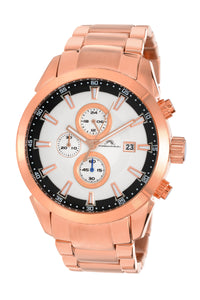 Elegant and graceful, the Enzo features a distinctive dial in white, housed in a rose‑toned round stainless steel case. Paired with a rose stainless steel bracelet, protected by a sapphire‑coated crystal, chronograph subdials track minutes and seconds a date window keeps you on track—a dynamic blend of art and engineering.