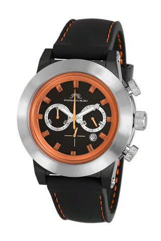 Elegant and polished, the Finley features a distinctive dial in black with orange and silver‑tone elements, housed in a silver‑tone round stainless steel case. Paired with a silicone strap, protected by a sapphire‑coated crystal, a date window keeps you on track dual time zone display lets you track another city—a timeless piece that balances style and luxury.