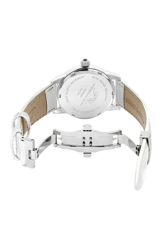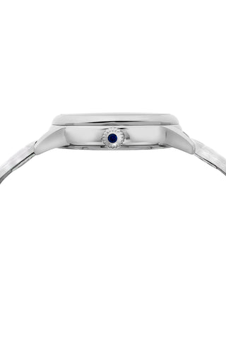 Elegant and polished, the Gemma features a distinctive dial in turquoise, housed in a silver‑tone round stainless steel case. Paired with a genuine leather strap, protected by a sapphire‑coated crystal, accented with sparkling diamonds—a timeless piece that balances style and luxury.