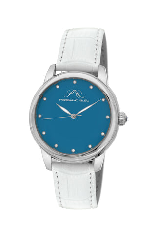 Porsamo Bleu Gemma Luxury Diamond Women's Watch, Genuine Leather Band, Silver, White, Turquoise 731AGEL