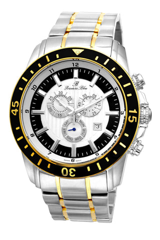Porsamo Bleu Grand Prix G Luxury Chronograph Men's Stainless Steel Watch, Silver, Black 082AGPS