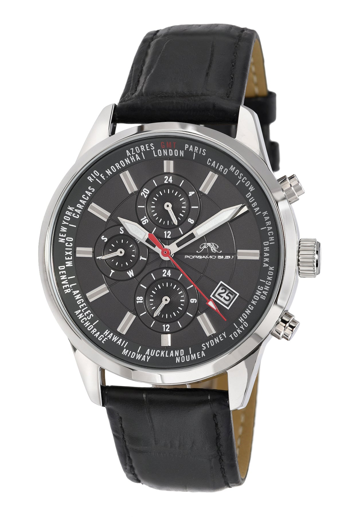 Porsamo Bleu Harrison Luxury Men's Watch, Genuine Leather Band, Graphite, Black 881BHAL Sale
