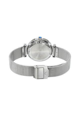 Elegant and graceful, the Hazel features a distinctive dial in blue, housed in a silver‑tone round stainless steel case. Paired with a silver stainless steel bracelet, protected by a sapphire‑coated crystal, accented with radiant topaz—a timeless piece that balances style and luxury.