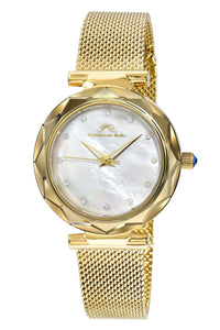 Porsamo Bleu Hazel Luxury Topaz Women's Stainless Steel Watch With White MOP Dial And Faceted Crystal Bezel, Gold, 1271BHAS