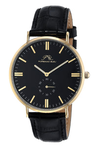 Porsamo Bleu Henry Luxury Men's Watch Genuine Leather Band, Gold, Black 842DHEL
