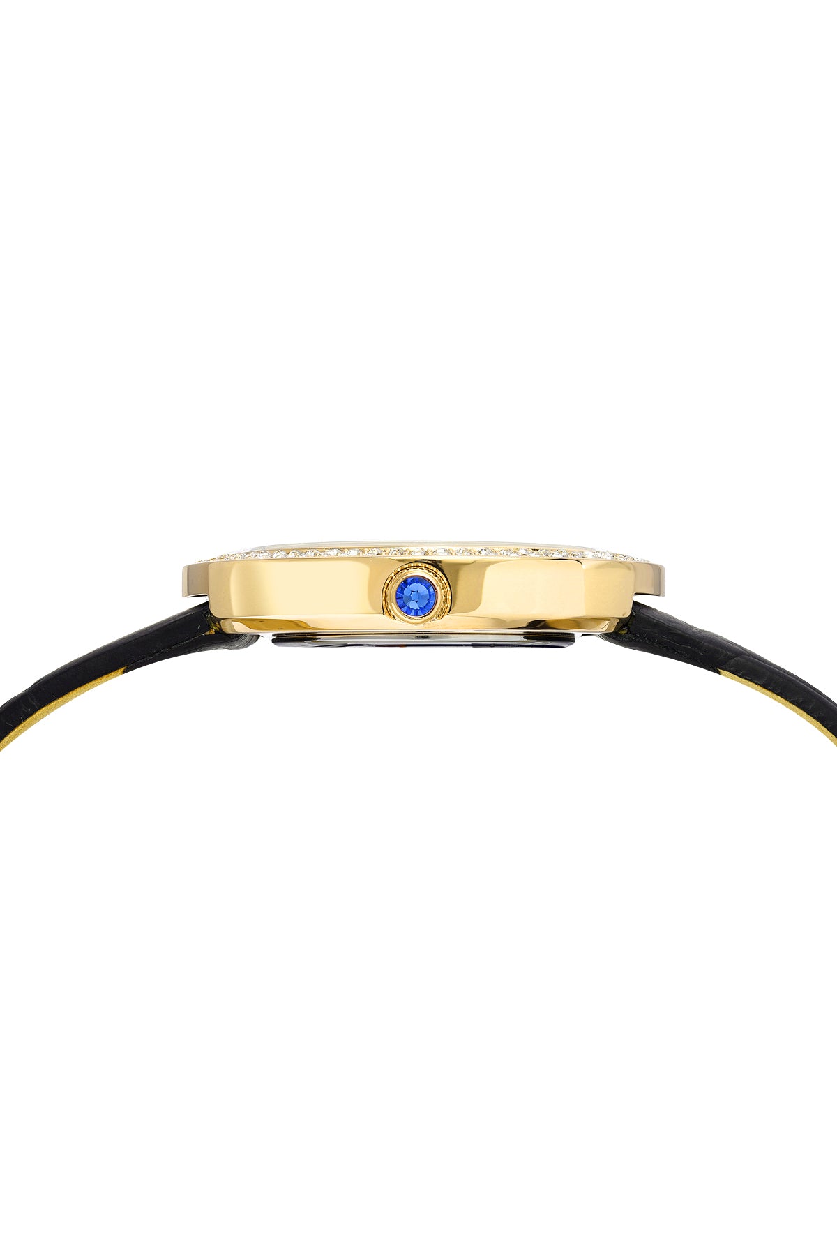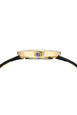 Porsamo Bleu Larissa Luxury Women's Watch, Genuine Leather Band, Crystal Inlaid Bezel, White, Gold, Black 891BLAL