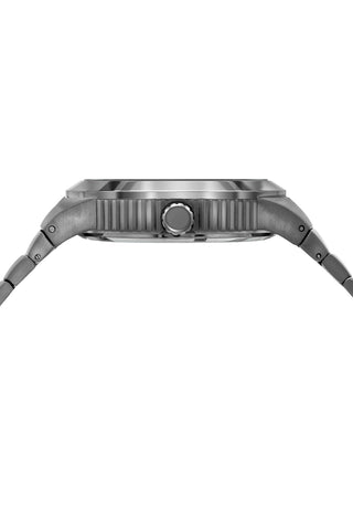 Elegant and sophisticated, the Luca features a distinctive dial in grey, housed in a round stainless steel case. Paired with a stainless steel bracelet, protected by a sapphire‑coated crystal, day and date windows keep you on schedule a 24‑hour subdial provides a second time perspective—a refined accessory that exudes romance.