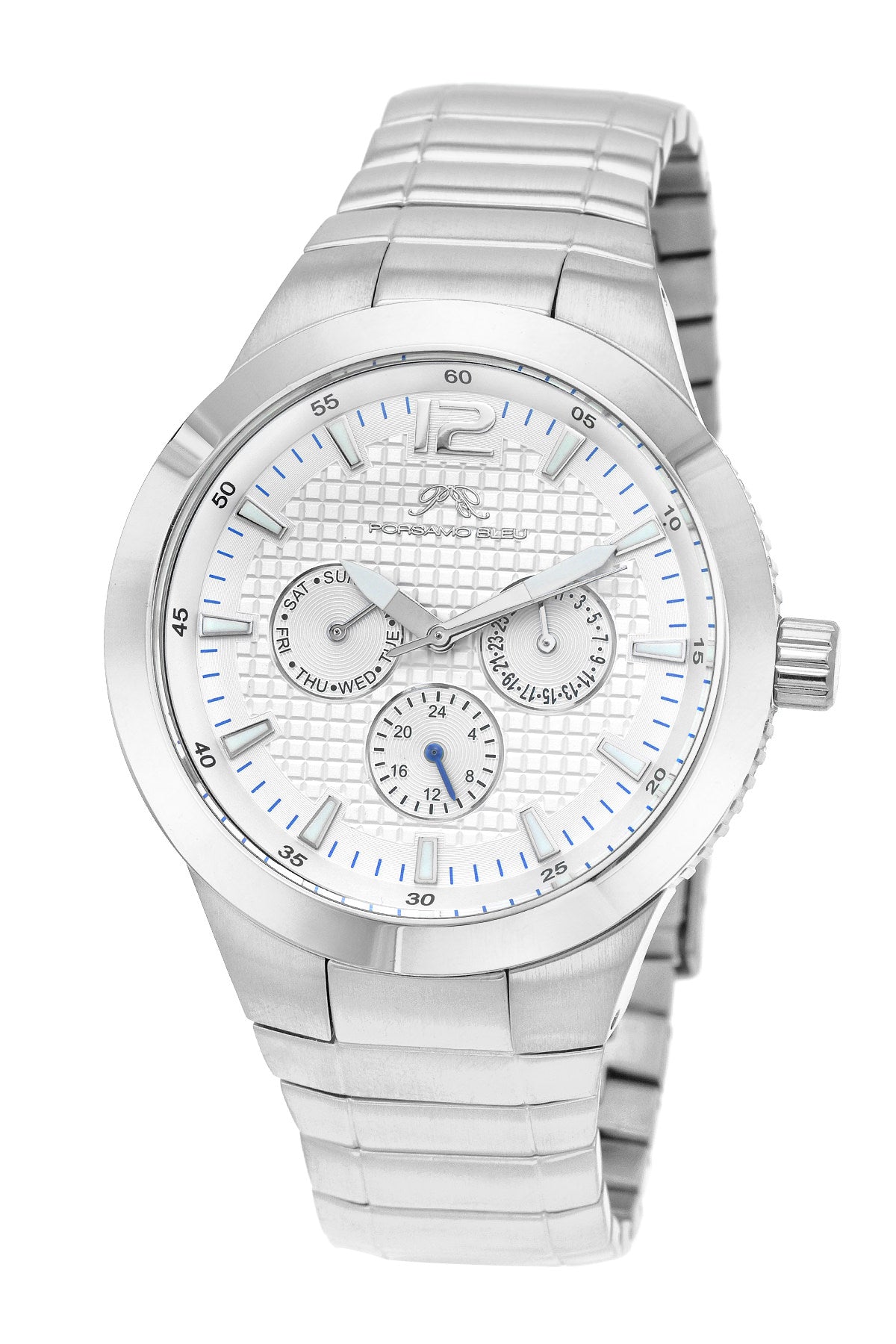 Porsamo Bleu Luca Luxury Men's Stainless Steel Watch, Silver, White 531ALUS