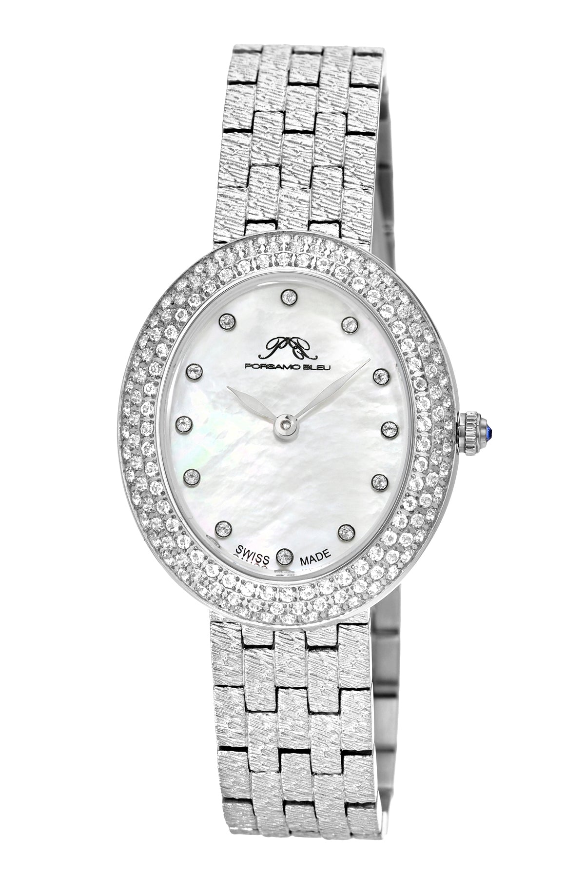 Porsamo Bleu Angelica Luxury Women's Oval And Topaz Stainless Steel Watch, Silver Tone 1342AANS Sale