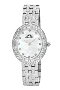 Porsamo Bleu Angelica Luxury Women's Oval And Topaz Stainless Steel Watch, Silver Tone 1342AANS