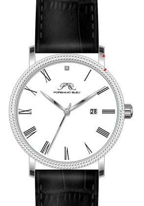 Porsamo Bleu Veritas1 Luxury Men's Diamond Watch Genuine Leather Band, Silver-Tone, Black, 1361AVEL