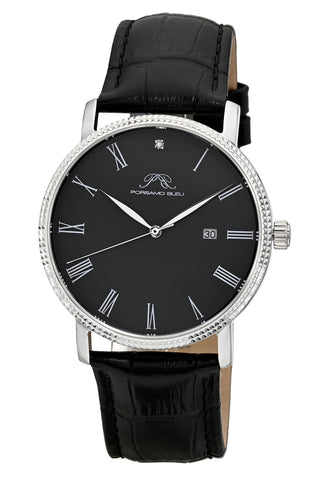 Veritas1 men's 40 mm watch with stainless steel case and genuine leather band