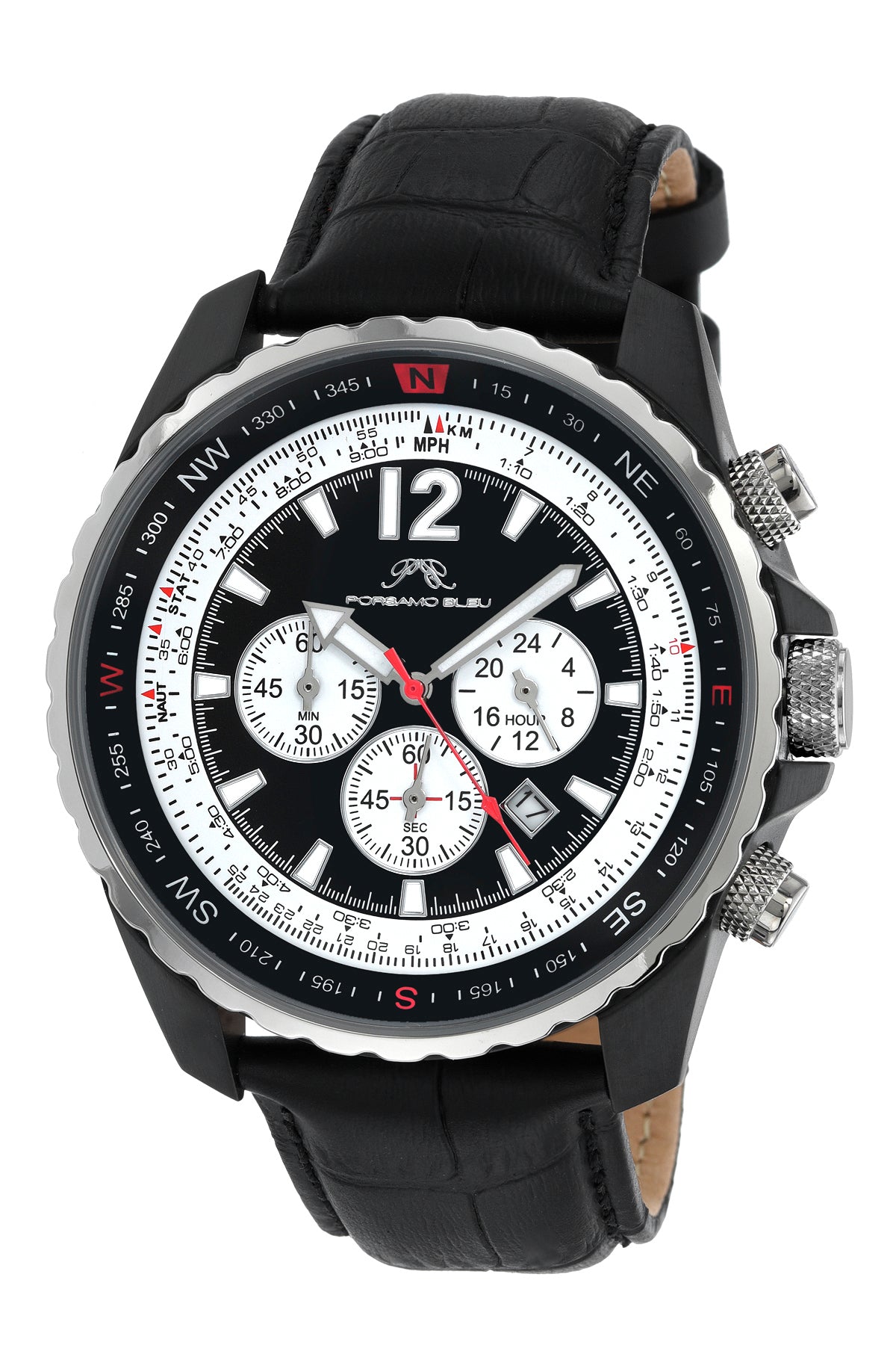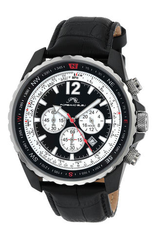 Porsamo Bleu Martin Luxury Chronograph Men's Watch Genuine Leather Band, Silver, Black, White 353DMAL Sale