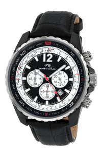 Martin men's 46 mm Chronograph tachymeter watch with stainless steel case and genuine leather band
