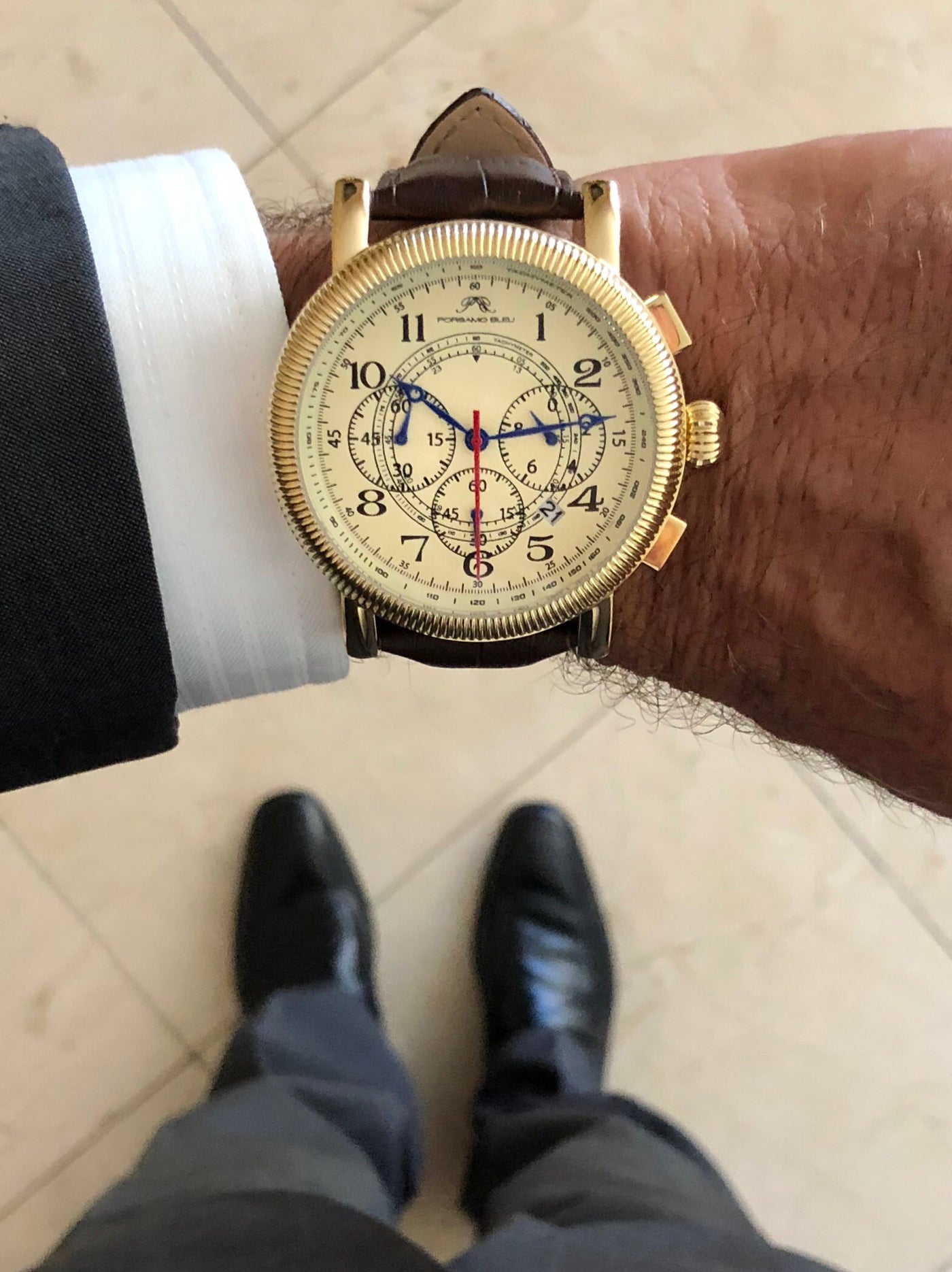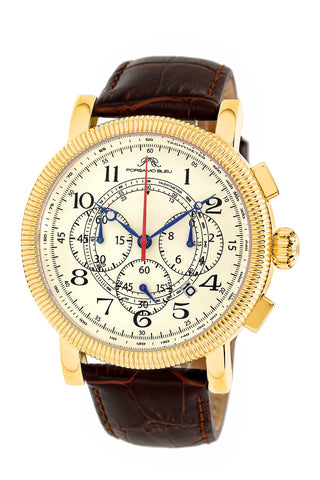 Porsamo Bleu Phileas Luxury Chronograph Men's Watch, Genuine Leather Band Gold, Brown 471BPHL