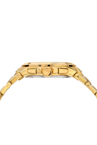 Elegant and polished, the Pierre features a distinctive dial in blue with gold‑tone elements, housed in a gold‑tone round stainless steel case. Paired with a stainless steel bracelet, protected by a sapphire‑coated crystal, chronograph subdials track minutes and seconds a date window keeps you on track—a dynamic blend of art and engineering.