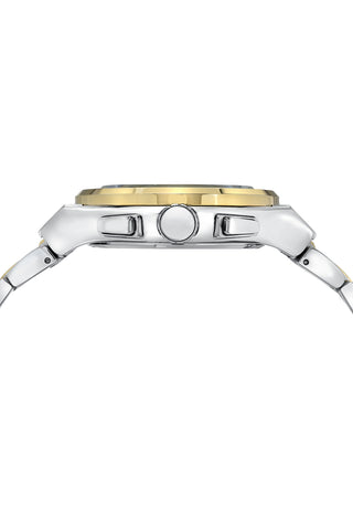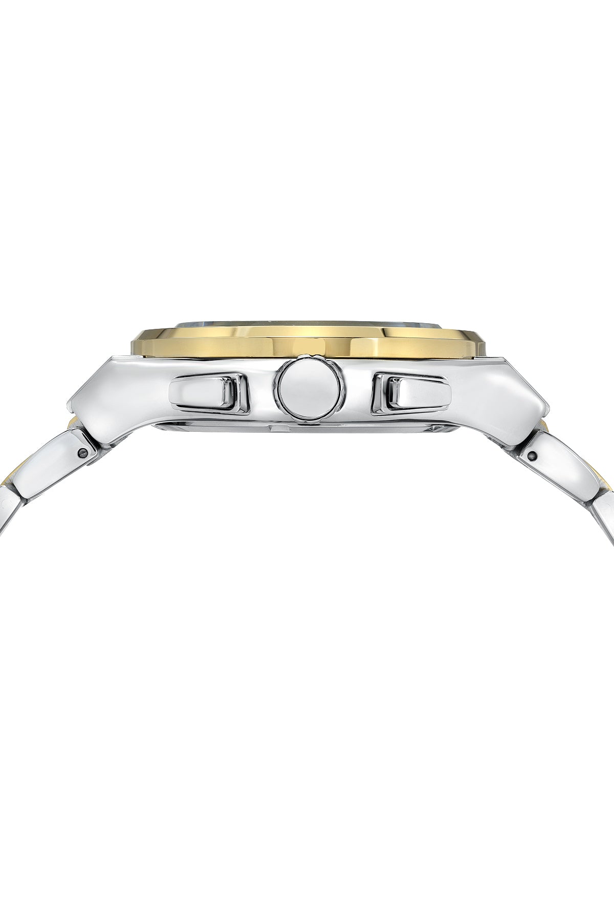Elegant and graceful, the Austin features a distinctive dial in white, housed in a two‑tone round stainless steel case. Paired with a silver and gold stainless steel bracelet, protected by a sapphire‑coated crystal, chronograph subdials track minutes and seconds a date window keeps you on track—a dynamic blend of art and engineering.