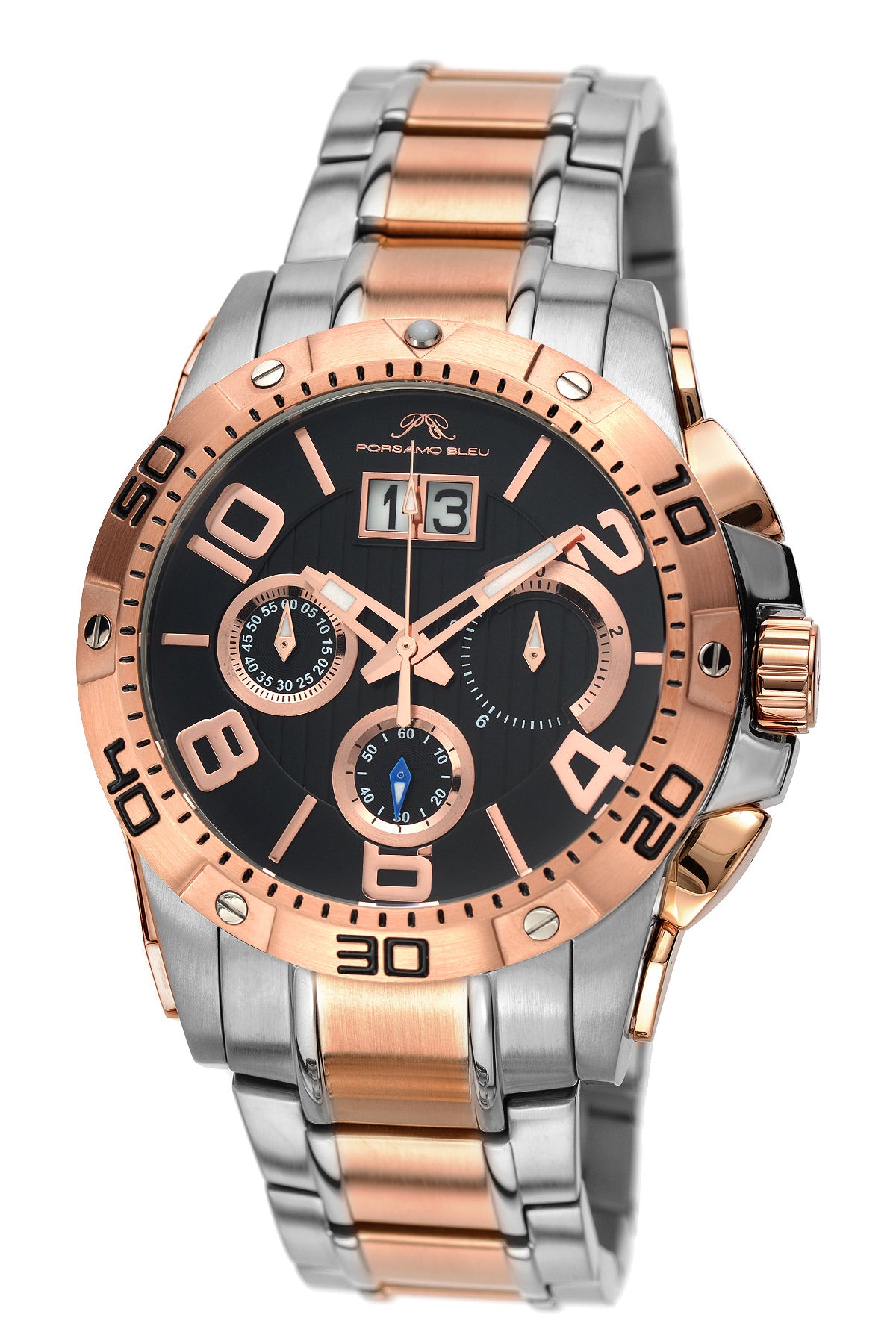 Porsamo Bleu Francoise Luxury Chronograph Men's Stainless Steel Watch, Silver, Rose, Black 241AFRS