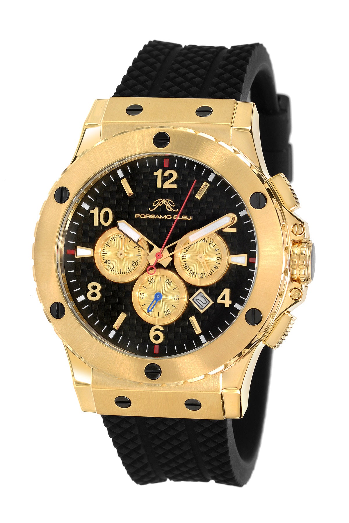 Porsamo Bleu Marcus Luxury Chronograph Men's Watch, Silicone Strap, Gold, Black 652AMAR