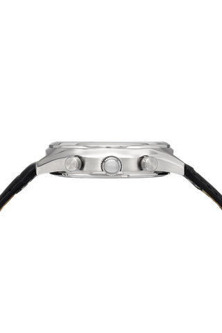 Elegant and refined, the Dylan features a distinctive dial in black, housed in a silver‑tone round stainless steel case. Paired with a black genuine leather strap, protected by a sapphire‑coated crystal, day and date windows keep you on schedule a 24‑hour subdial provides a second time perspective dual time zone display lets you track another city—an elegant treasure for any occasion.