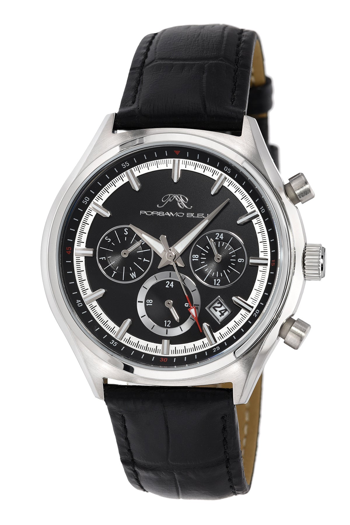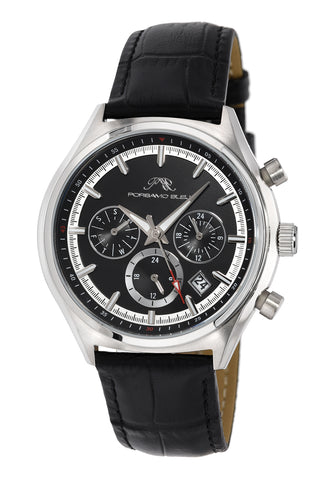 Porsamo Bleu Dylan Luxury Men's Watch, Genuine Leather Band, Black 871BDYL