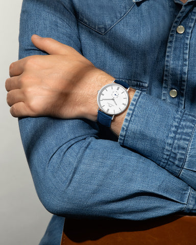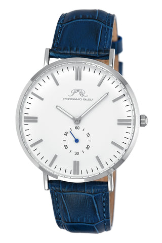 Porsamo Bleu Henry Luxury Men's Watch, Genuine Leather Band, Silver, Blue, White 841BHEL