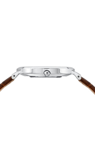 Elegant and modern, the Henry features a distinctive dial in white, housed in a silver‑tone round stainless steel case. Paired with a cognac genuine leather strap, protected by a sapphire‑coated crystal—a timeless piece that balances style and luxury.