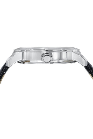 Porsamo Bleu Nycm21 Luxury Moon Phase Mens Genuine Leather Band Watch, Silver, Black With White Guilloche Dial 1201ANYL