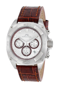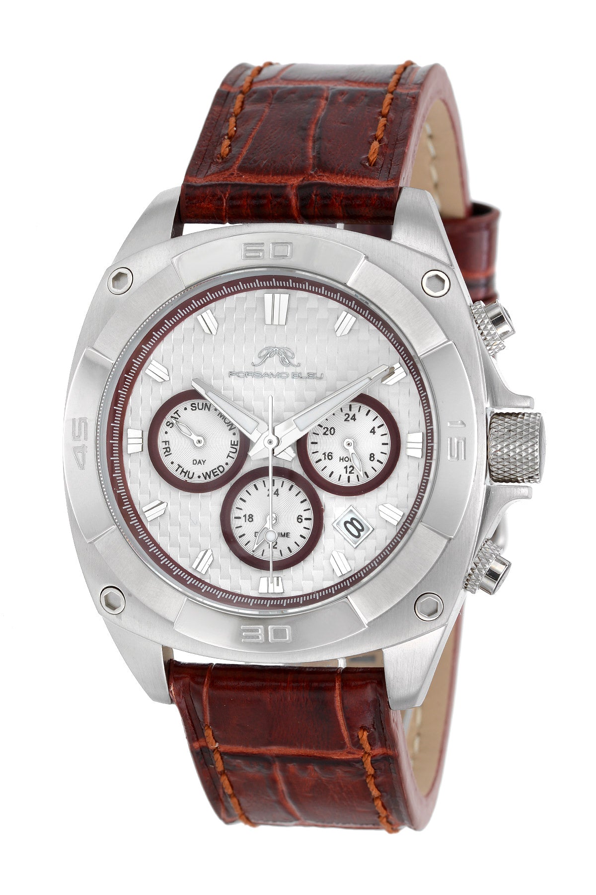 Porsamo Bleu Alex Luxury Men's Watch, Genuine Leather Band, Silver, Brown 292BALL