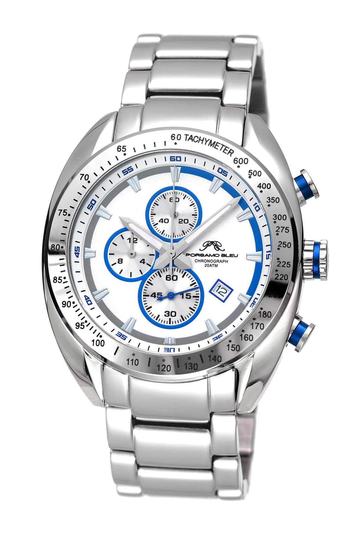 Porsamo Bleu Julien Luxury Chronograph Men's Stainless Steel Watch, Silver, White, Blue 271BJUS