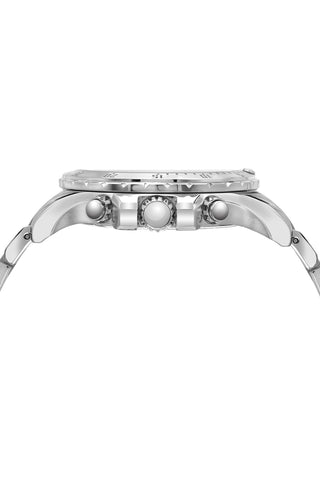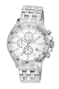 Elegant and timeless, the Lorenzo features a distinctive dial in white with silver‑tone elements, housed in a silver‑tone round stainless steel case. Paired with a silver stainless steel bracelet, protected by a sapphire‑coated crystal, chronograph subdials track minutes and seconds a date window keeps you on track—a dynamic blend of art and engineering.