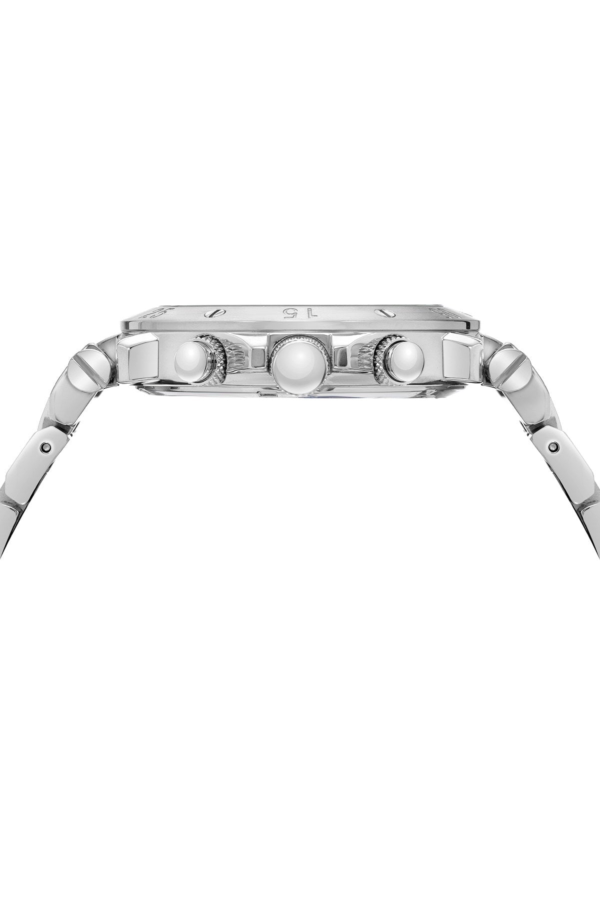Elegant and refined, the Sasha features a distinctive dial in silver‑tone with gold‑tone elements, housed in a silver‑tone round stainless steel case. Paired with a stainless steel bracelet, protected by a sapphire‑coated crystal, chronograph subdials track minutes and seconds a date window keeps you on track—a dynamic blend of art and engineering.