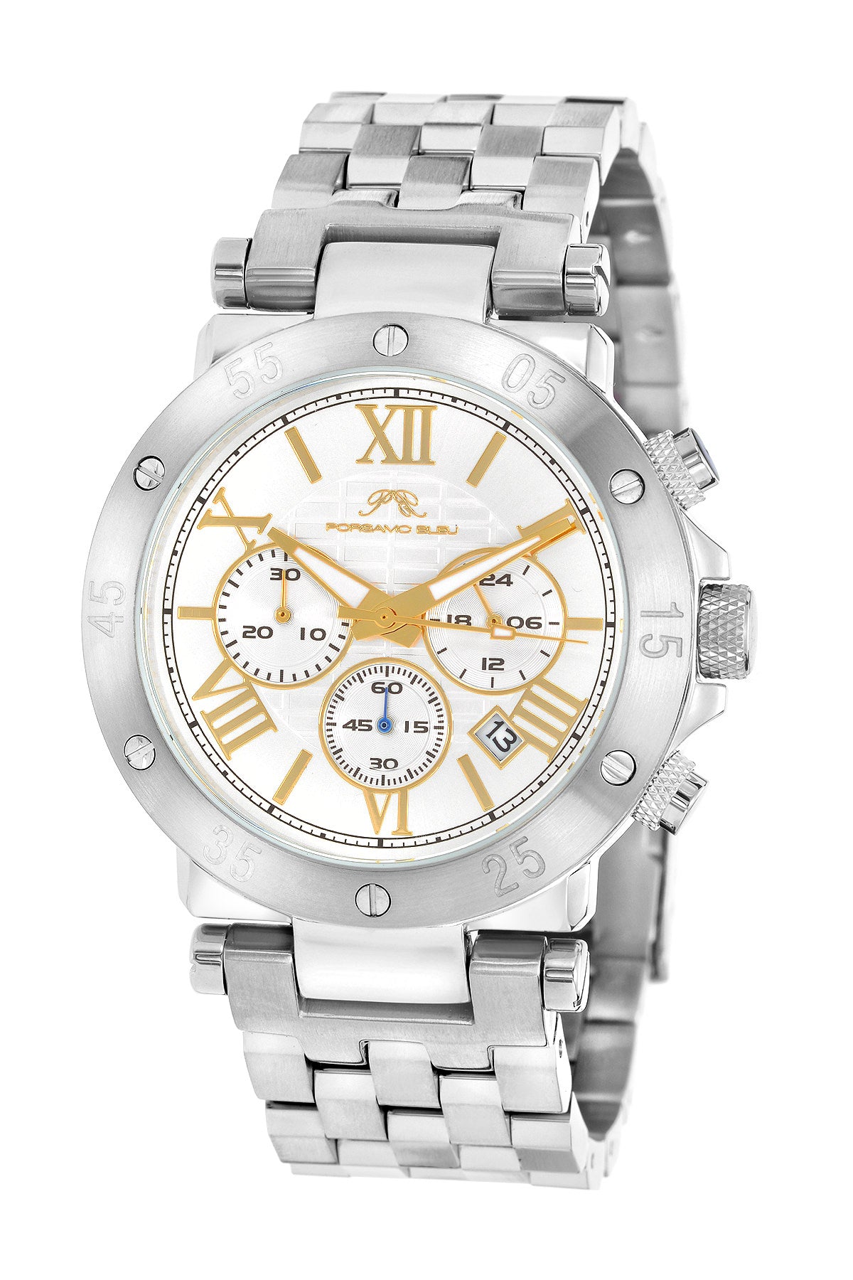 Porsamo Bleu Sasha Luxury Chronograph Men's Stainless Steel Watch, Silver, White 441ASAS