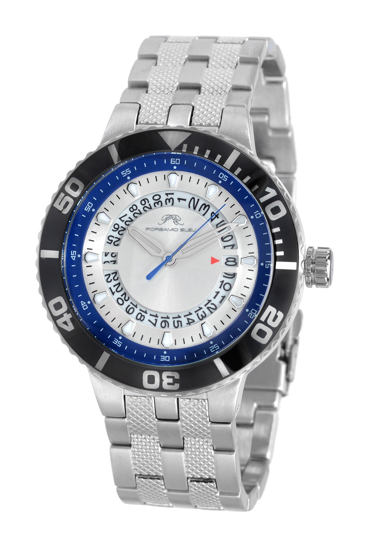 Porsamo Bleu Sebastian Luxury Men's Stainless Steel Watch, Silver, Black, Blue 462ASES