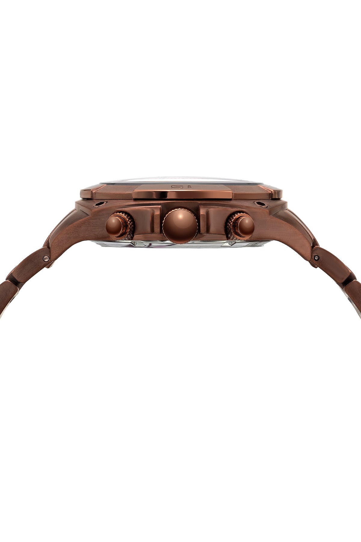 Elegant and bold, the Alex features a distinctive dial in brown with rose‑toned elements, housed in a round stainless steel case. Paired with a stainless steel bracelet, protected by a sapphire‑coated crystal, day and date windows keep you on schedule a 24‑hour subdial provides a second time perspective dual time zone display lets you track another city—an elegant treasure for any occasion.