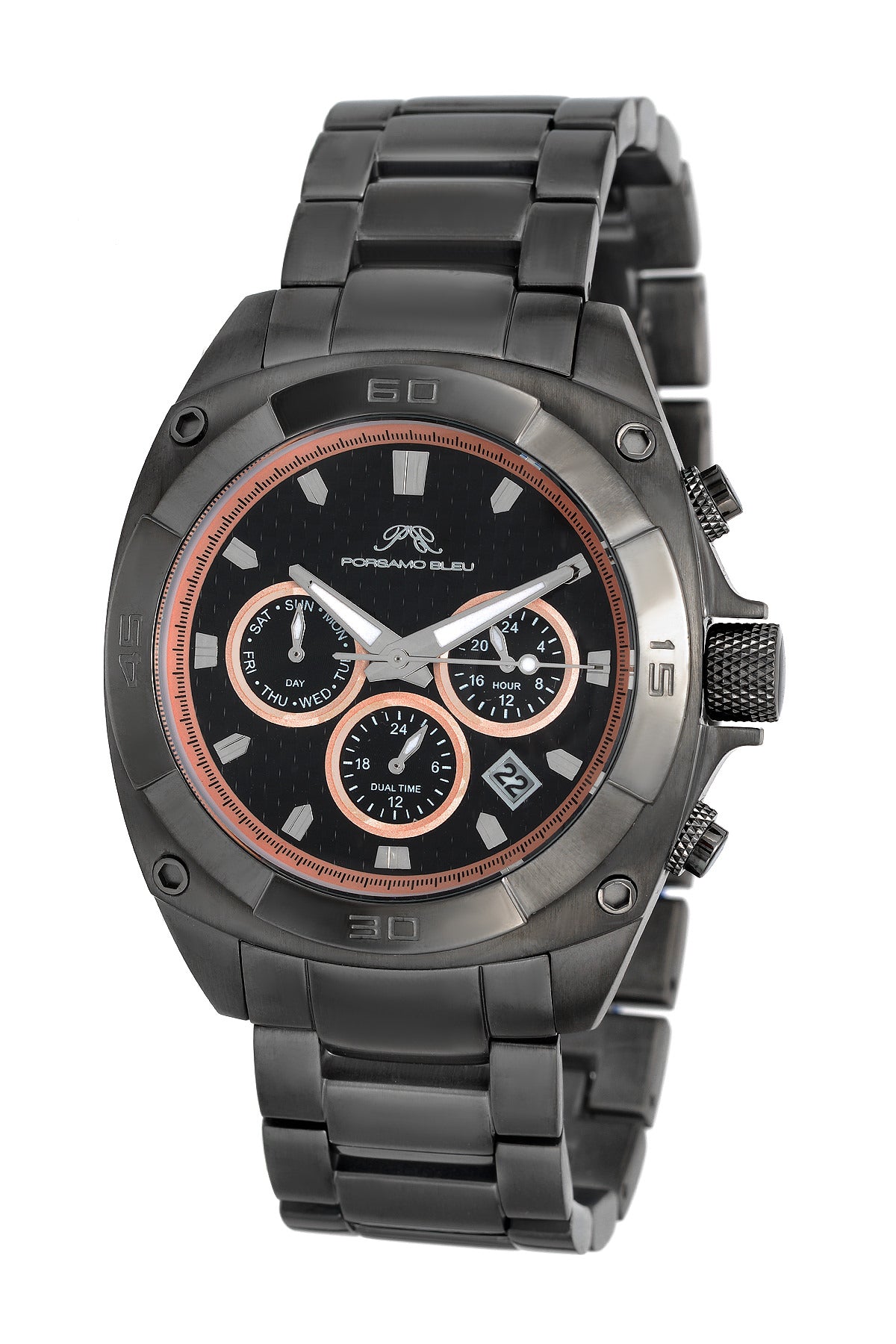 Porsamo Bleu Alex Luxury Men's Stainless Steel Watch, Gunmetal, Black 291CALS