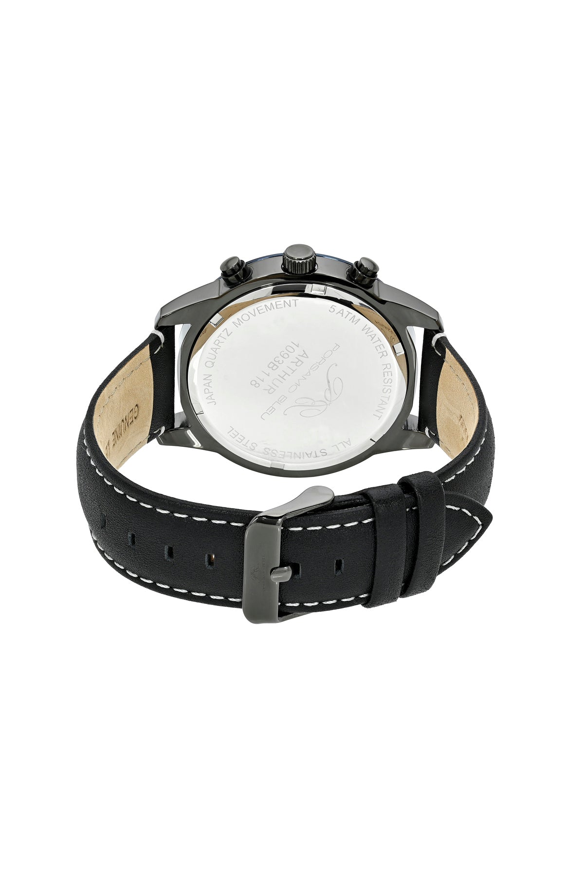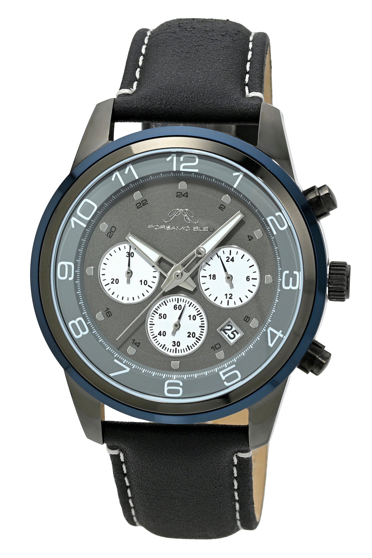 Porsamo Bleu Arthur Luxury Chronograph Men's Genuine Leather Band Watch, Gunmetal, Black, Blue 1093BARL