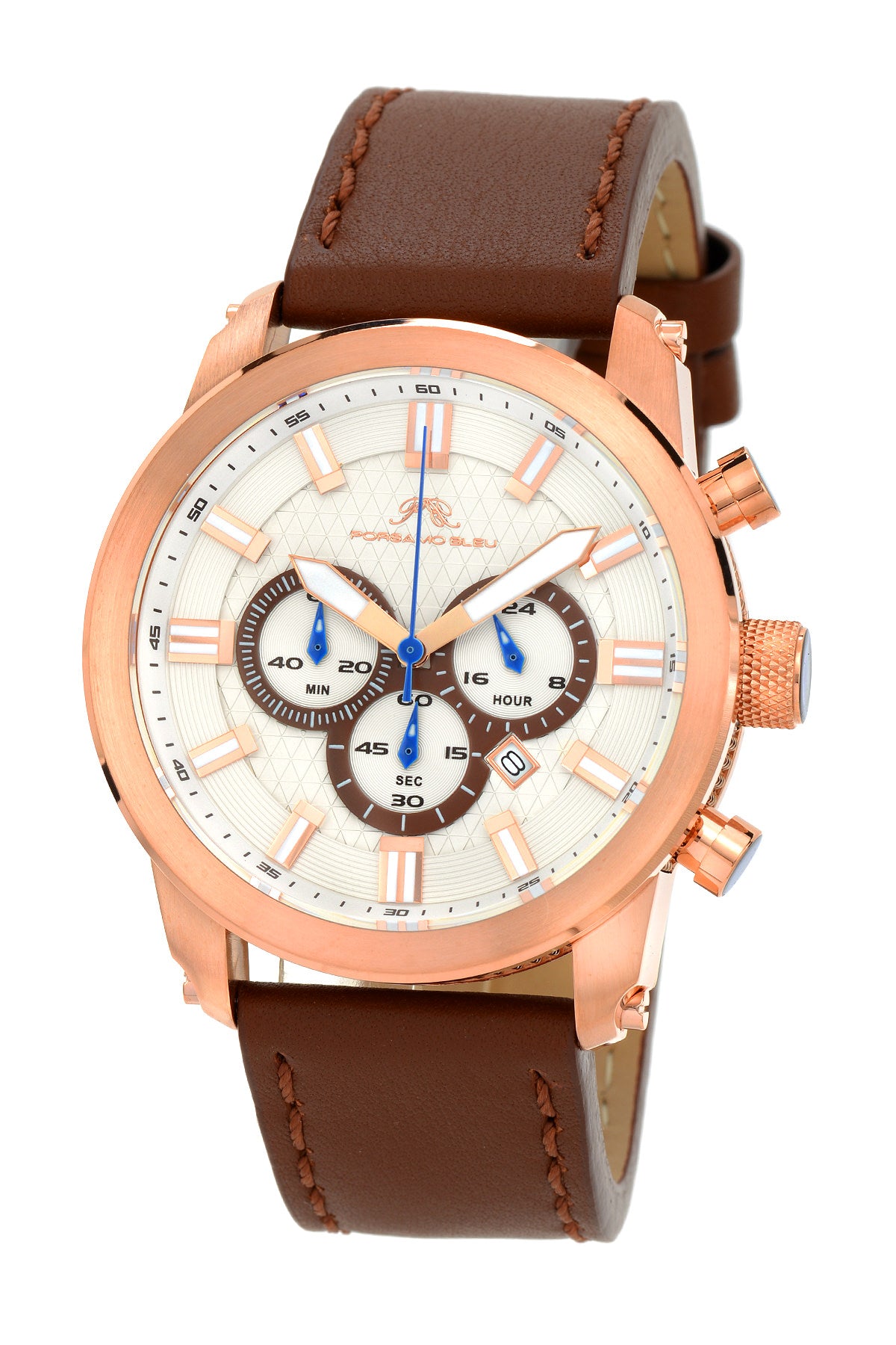 Porsamo Bleu Demetrios Luxury Chronograph Men's Watch, Genuine Leather Band, Rose, Brown 602CDEL