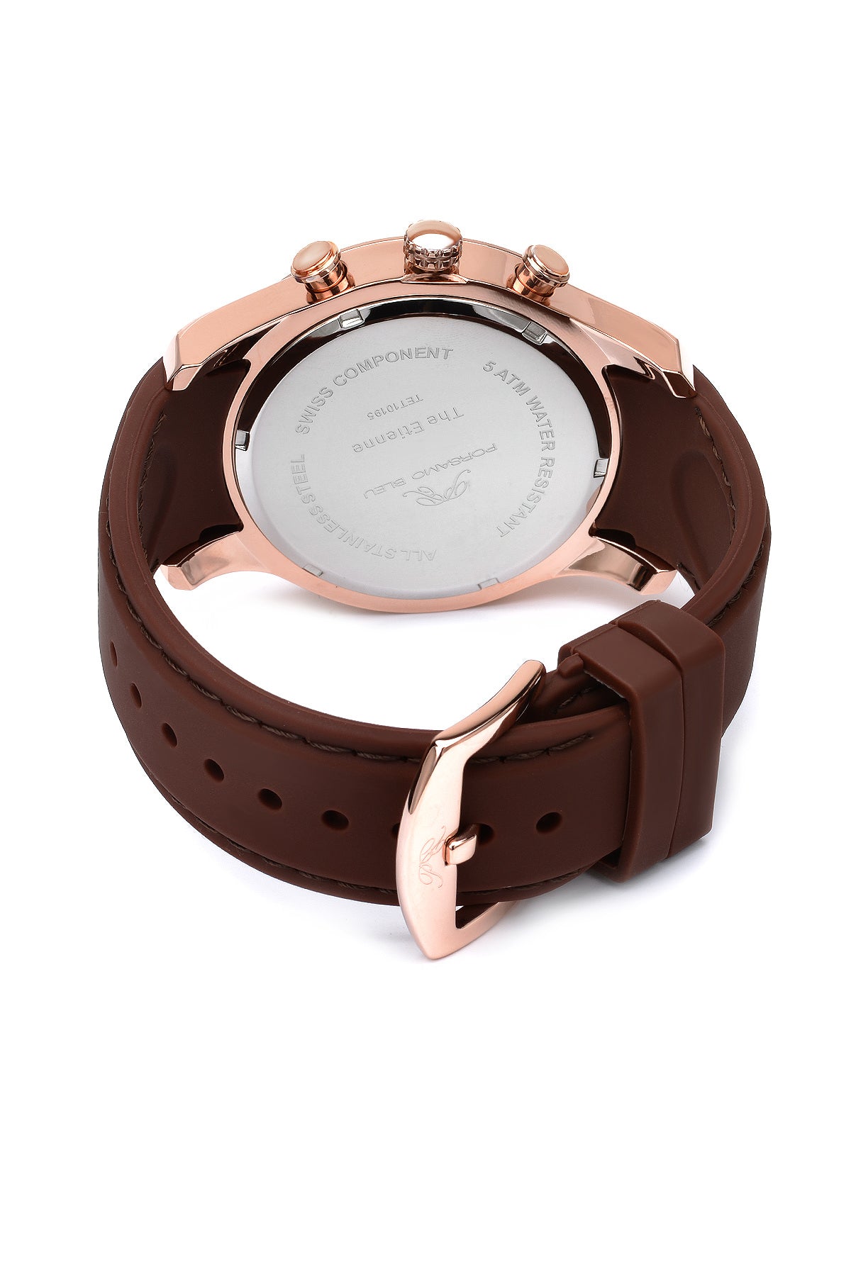 Porsamo Bleu Etienne Luxury Men's Watch, Silicone Strap, Rose, Brown 213BETR