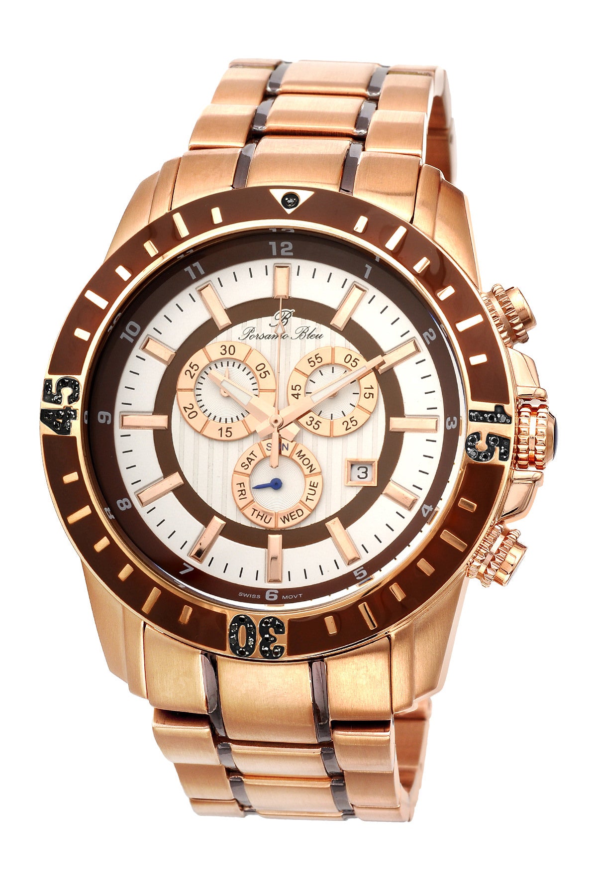 Porsamo Bleu Grand Prix Noir Luxury Chronograph Men's Stainless Steel Watch, Rose, Brown 092CGPS Sale